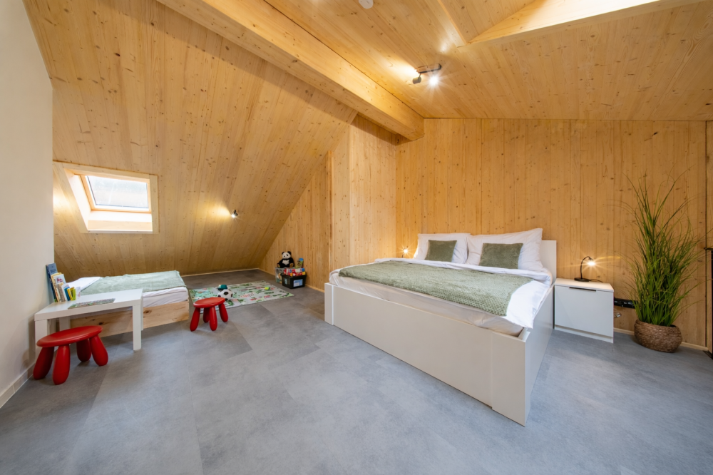 Tento designový loft pojmenovaný po nejvyšší hoře české části Jizerských hor nabízí stylové útočiště pro 3 osoby. Interiér v sobě snoubí moderní industriální prvky s útulností, které vévodí vzdušný obývací prostor s vysokým stropem. V horním patře se nachází klidová zóna s komfortním manželským lůžkem, zatímco spodní část disponuje rozkládací pohovkou, která poslouží jako plnohodnotné lůžko pro třetího hosta.